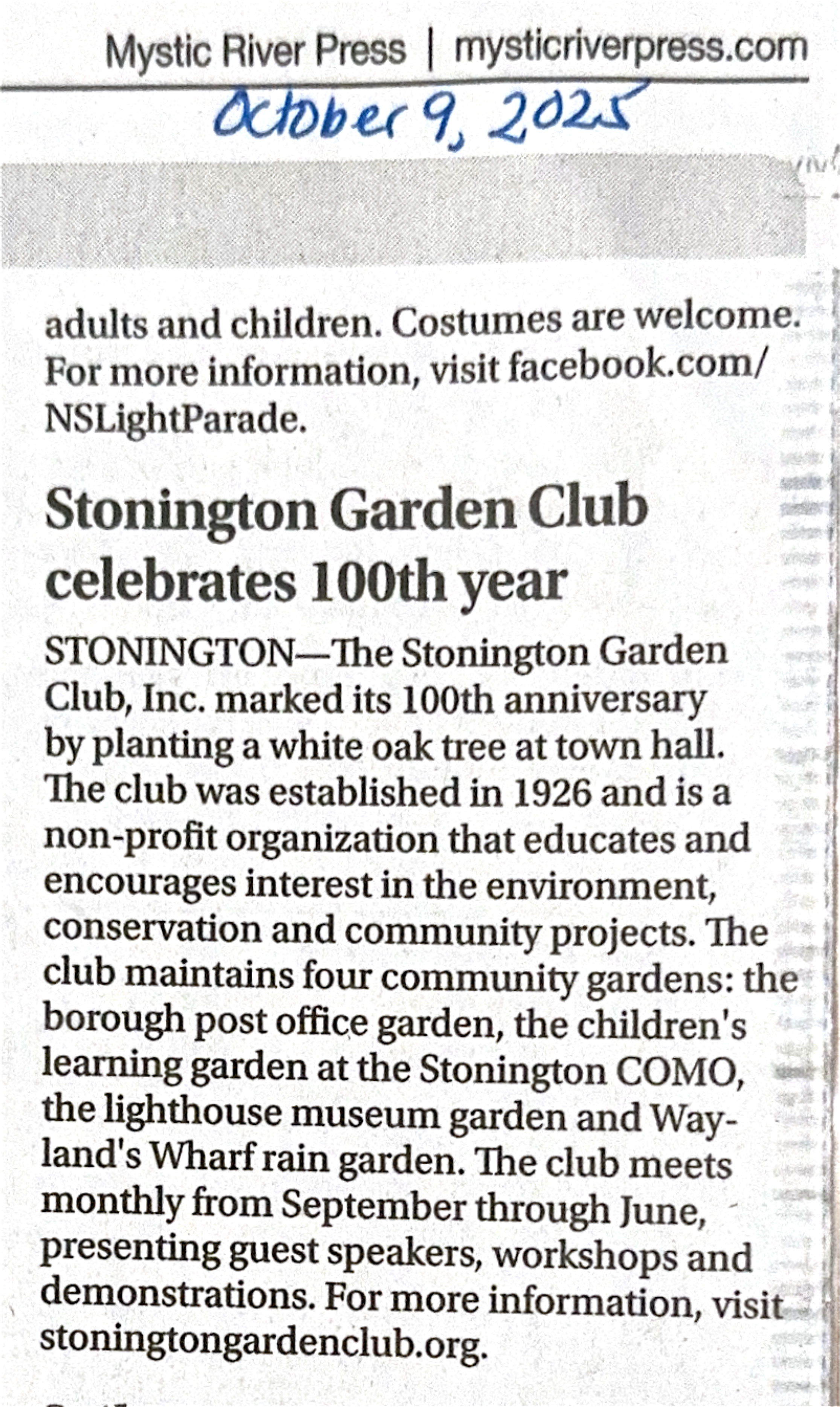 Stonington Garden Club PO Box 385 Stonington, CT 06378