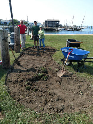 In 2018, the Stonington Garden Club partnered with Stonington Borough, the Long Island Sound Study Group, and the Eastern Connecticut Conservation District (ECCD) to create a rain garden at Wayland's Wharf. The garden's purpose was to filter toxins from the stormwater runoff in the parking area before it flowed into Stonington Harbor. While the garden is currently doing its job, it is too small to serve the entire area. The native plants in the garden filter toxins from the water collected in its bowl-shaped base, but gallons of toxin-infused stormwater still flow directly from the parking area into the harbor during and after rain and wind storms. To expand the garden's positive impact on this coastal location, there is a proposal to increase its size.